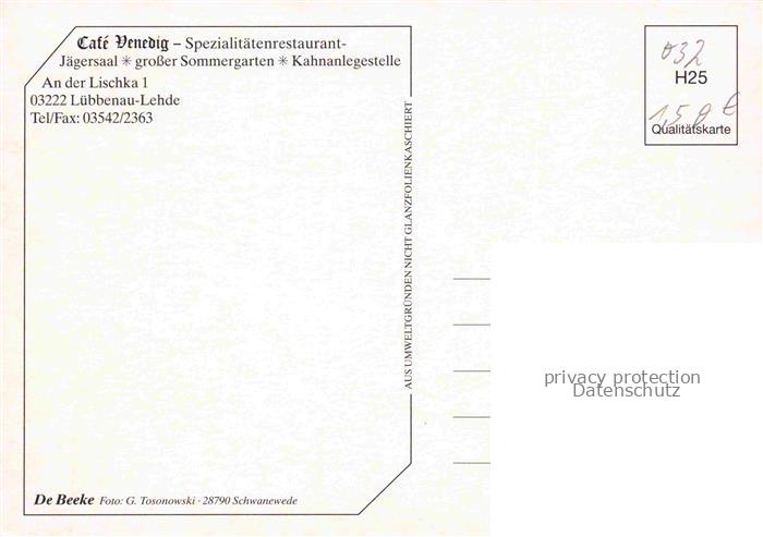 74027662 Lehde Luebbenau Spreewald Café Venedig Sommergarten postalisch nicht gelaufen Erhaltung siehe scans [FriedD77] KatCode: 11110012066196