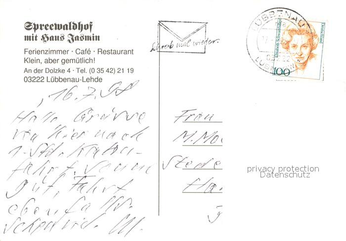 73659605 alte Postkarte Lehde Spreewaldhof Haus Jasmin postalisch gelaufen Erhaltung siehe scans [LiesaD40] KatCode: 11110012066196