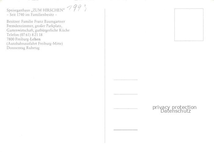 74154753 Lehen Freiburg Breisgau BW Gasthaus Hirschen postalisch nicht gelaufen Erhaltung siehe scans [WerneD78] KatCode: 11110008311000