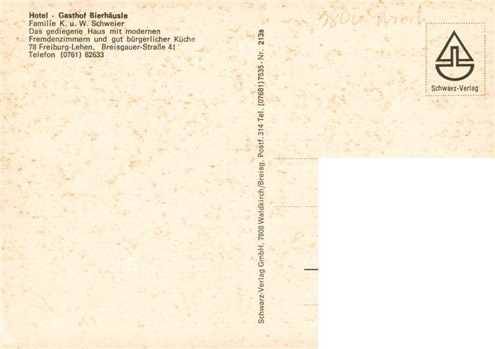 73932719 Lehen Freiburg Hotel Gasthof Bierhaeusle postalisch nicht gelaufen Erhaltung siehe scans [WerneD78] KatCode: 11110008311000