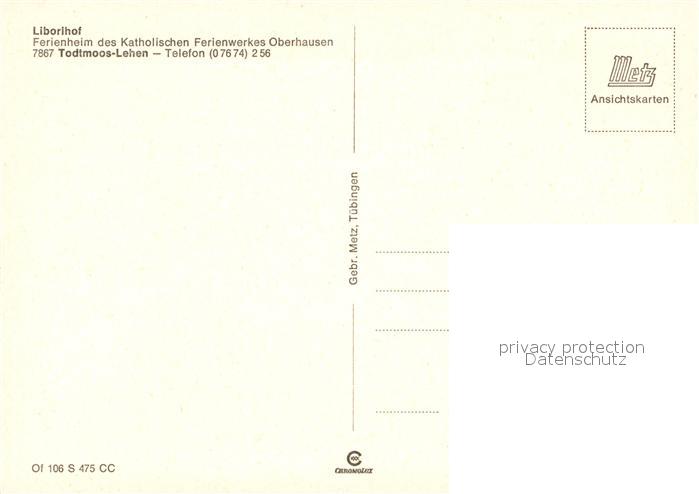 73105761 Lehen Todtmoos Liborihof Ferienheim postalisch nicht gelaufen Erhaltung siehe scans [KathaD81] KatCode: 11110008337108