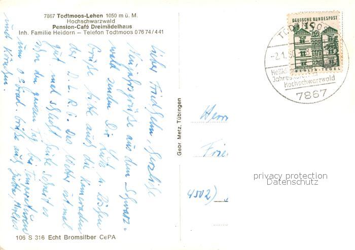 73093921 alte Postkarte Lehen Todtmoos Pension Cafe Dreimaedelhaus postalisch gelaufen Erhaltung siehe scans [KathaD81] KatCode: 11110008337108