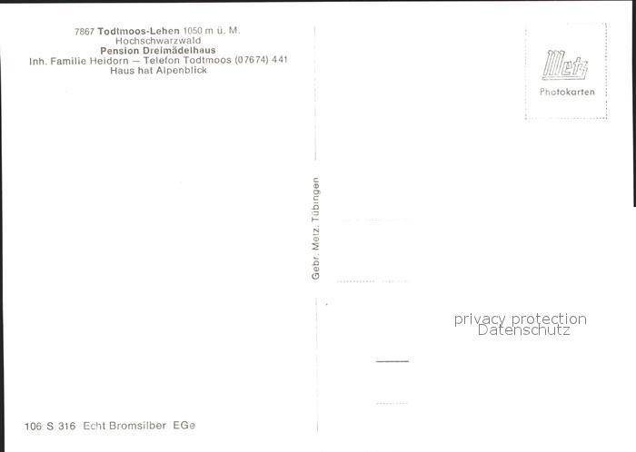 41784454 Lehen Todtmoos Pension Dreimaedelhaus postalisch nicht gelaufen Erhaltung siehe scans KatCode: 11110008337108