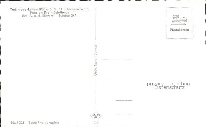 41783930 Lehen Todtmoos Pension Dreimaedelhaus Ortsansicht postalisch nicht gelaufen Erhaltung siehe scans KatCode: 11110008337108