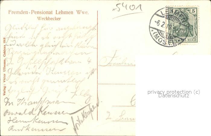 41526218 alte Postkarte Lehmen Fremden-Pensionat postalisch gelaufen Erhaltung siehe scans KatCode: 11110007137504