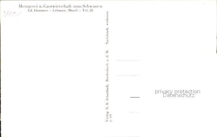 31720796 Lehmen Gasthaus zum Schwanen postalisch nicht gelaufen Erhaltung siehe scans KatCode: 11110007137504