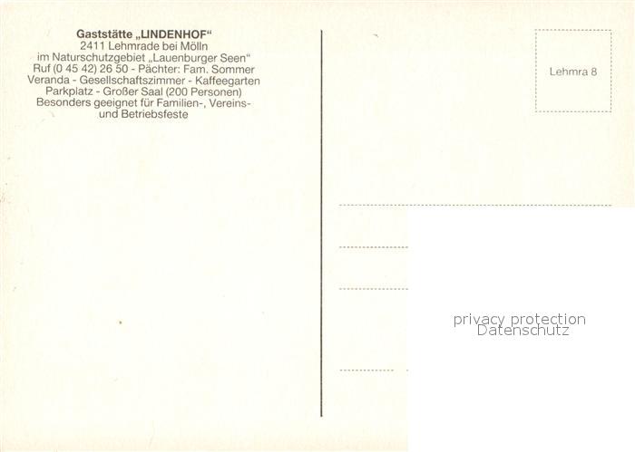 73642669 Lehmrade Gaststaette Lindenhof Restaurant Landschaftspanorama Naturschutzgebiet Lauenburger Seen postalisch nicht gelaufen Erhaltung siehe scans [FriedD77] KatCode: 11110001053084