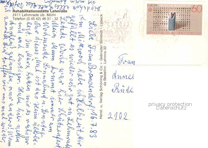 72720561 alte Postkarte Lehmrade Reha Zentrum postalisch gelaufen Erhaltung siehe scans [KathaD79] KatCode: 11110001053084