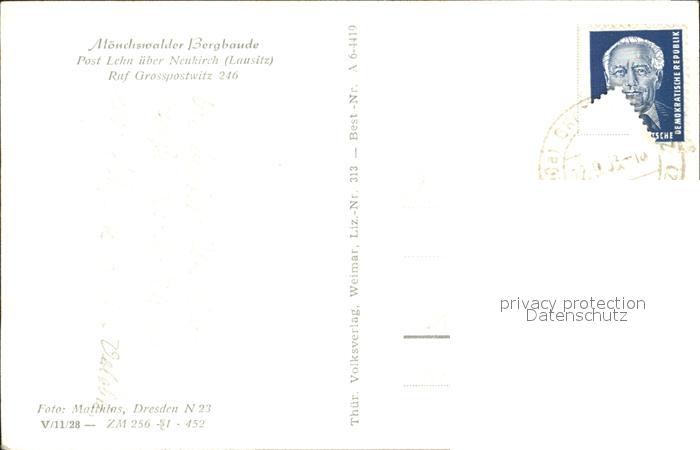 72318838 alte Postkarte Lehn Lausitz Moenchswalder Bergbaude postalisch gelaufen Erhaltung siehe scans KatCode: 11110014272010