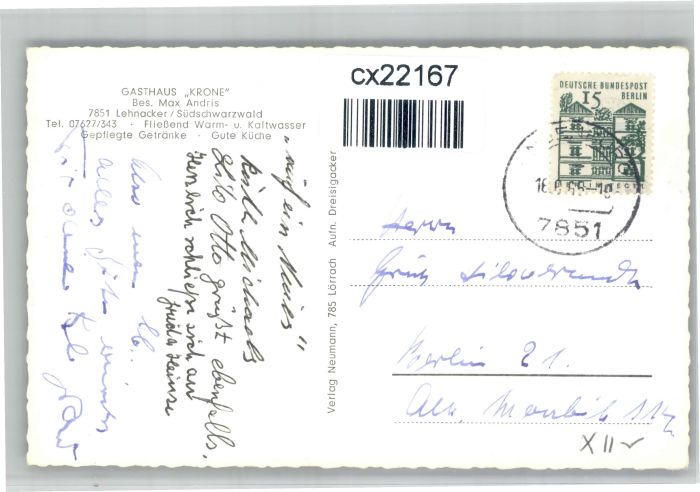 30739572 alte Postkarte Lehnacker Gasthaus Krone postalisch gelaufen KatCode: 11110008336084