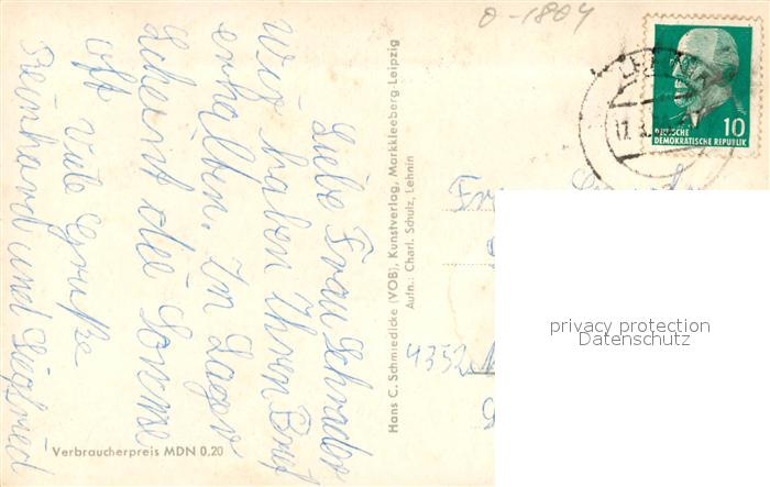 43369853 alte Postkarte Lehnin Hauptstrasse Gohlitzsee Kirche Schule Alexisdenkmal Wappen postalisch gelaufen Erhaltung siehe scans [FriedD77] KatCode: 11110012069306