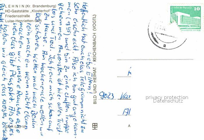 72703665 alte Postkarte Lehnin HO Gaststaette Klosterhof Friedensstrasse Luise Henrietten Stift postalisch gelaufen Erhaltung siehe scans [FriedD77] KatCode: 11110012069306