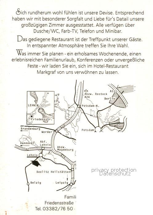 73659625 Lehnin Hotel Restaurant Markgraf postalisch nicht gelaufen Werbekarte (keine Postkarte) Erhaltung siehe scans [LiesaD40] KatCode: 11110012069306
