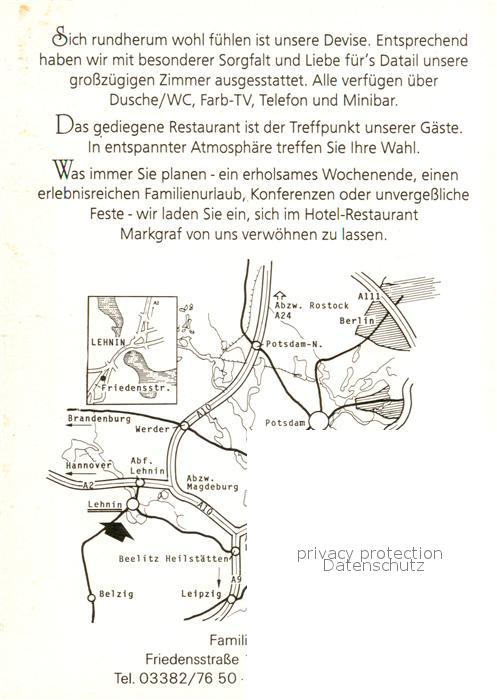 73659691 Lehnin Hotel Restaurant Markgraf postalisch nicht gelaufen Werbekarte (keine Postkarte) Erhaltung siehe scans [FriedD77] KatCode: 11110012069306