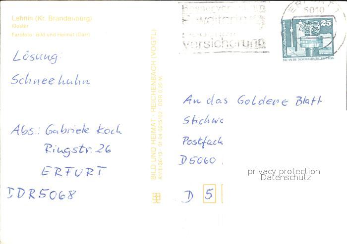 72461606 alte Postkarte Lehnin Kloster postalisch gelaufen Erhaltung siehe scans KatCode: 11110012069306