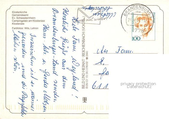 73270955 alte Postkarte Lehnin Klosterkirche Gemeindeamt Schwesternheim Campingplatz Klostersee Ruderboot postalisch gelaufen Erhaltung siehe scans [FriedD77] KatCode: 11110012069306