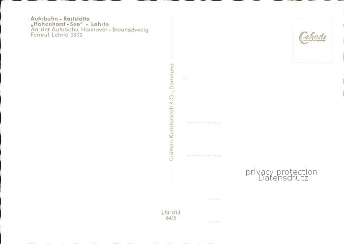 72506702 Lehrte Hannover Autobahnrasthotel Hohenhoest See postalisch nicht gelaufen Erhaltung siehe scans KatCode: 11110003241011