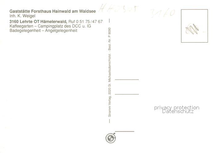 73663681 Lehrte Hannover Restaurant Forsthaus Hainwald am Waldsee postalisch nicht gelaufen Erhaltung siehe scans [LiesaD40] KatCode: 11110003241011
