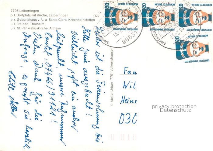 73724401 alte Postkarte Leibertingen Dorfplatz mit Kirche Gasthaus zur Traube Freibad Thalheim St Pankratiuskirche Altheim postalisch gelaufen Erhaltung siehe scans [WerneD78] KatCode: 11110008437072