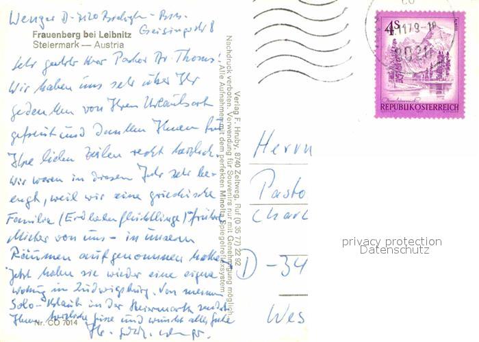 72802660 alte Postkarte Leibnitz Frauenberg postalisch gelaufen Erhaltung siehe scans [LiesaD40] KatCode: 11390225061022