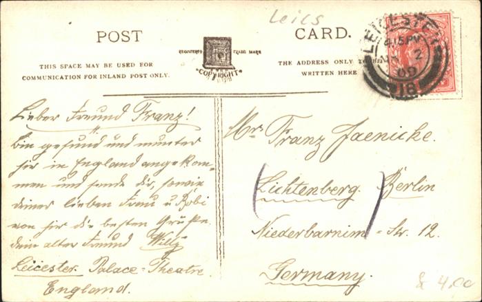 10928379 old postcard Leicester United Kingdom Leicester Granby Street Kutsche postalisch gelaufen KatCode: 11570UKF2F21FN