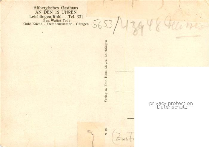 73705632 Leichlingen Rheinland Altbergisches Gasthaus An den 12 Uhren postalisch nicht gelaufen Erhaltung siehe scans [LiesaD40] KatCode: 11110005378016