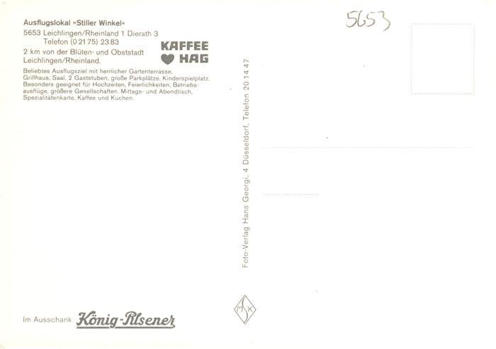 73943342 Leichlingen Rheinland Ausflugsgaststaette Stiller Winkel Terrasse Gastraum postalisch nicht gelaufen Erhaltung siehe scans [WerneD78] KatCode: 11110005378016
