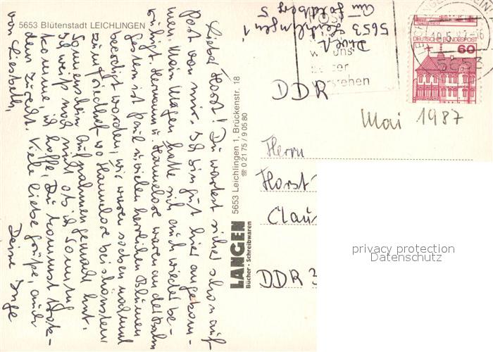 73618338 alte Postkarte Leichlingen Rheinland Bluetenstadt Fliegeraufnahme postalisch gelaufen Erhaltung siehe scans [FriedD77] KatCode: 11110005378016