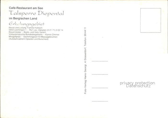 72582130 Leichlingen Rheinland Cafe Restaurant am See Talsperre Diepental postalisch nicht gelaufen Erhaltung siehe scans [WerneD78] KatCode: 11110005378016