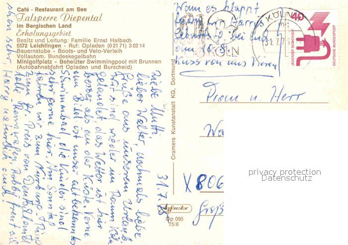 72917212 alte Postkarte Leichlingen Rheinland Cafe Restaurant Talsperre Diepental postalisch gelaufen Erhaltung siehe scans [KathaD81] KatCode: 11110005378016