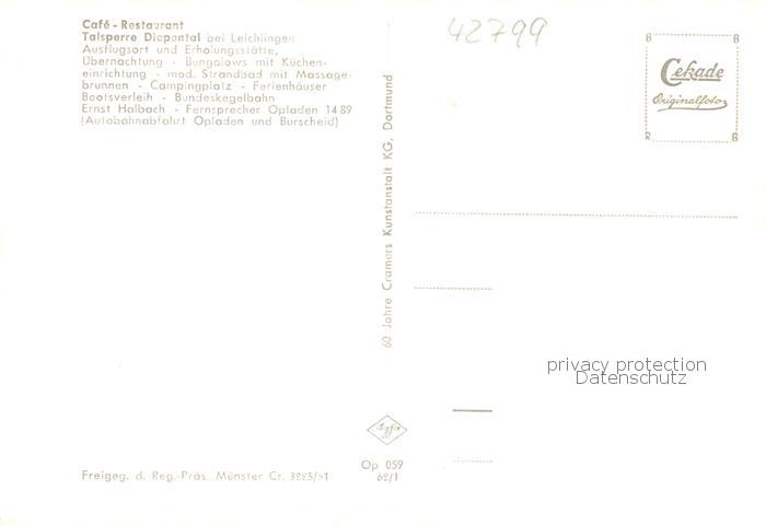 73855305 Leichlingen Rheinland Cafe Restaurant Talsperre Diepental postalisch nicht gelaufen Fliegeraufnahme Erhaltung siehe scans [FriedD77] KatCode: 11110005378016