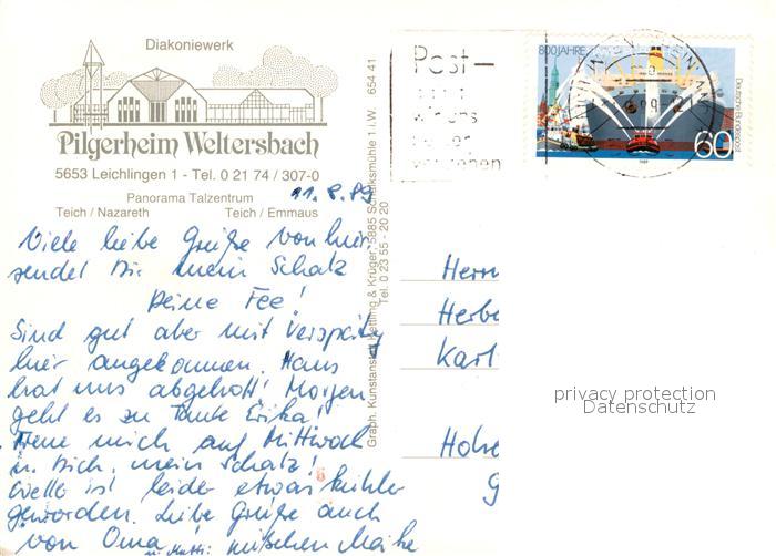 73657243 alte Postkarte Leichlingen Rheinland Diakoniewerk Pilgerheim Weltersbach postalisch gelaufen Erhaltung siehe scans [FriedD77] KatCode: 11110005378016