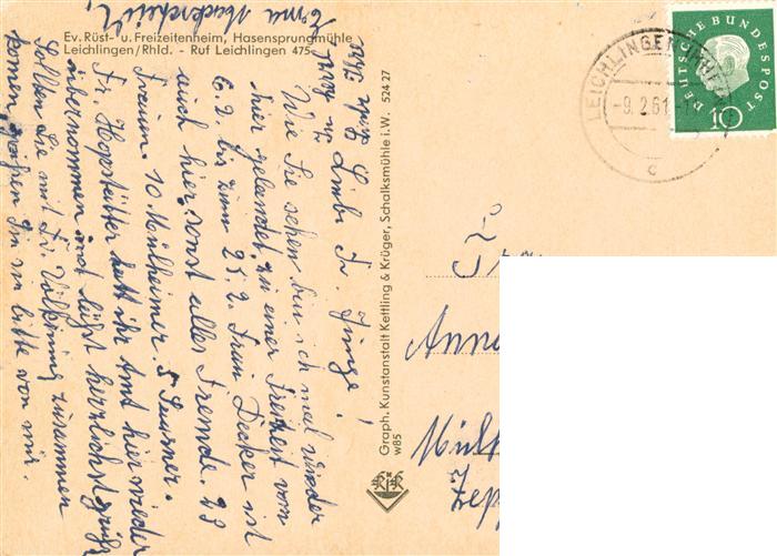 73873721 alte Postkarte Leichlingen Rheinland Evangelisches Ruest- und Freizeitenheim Hasensprungmuehle postalisch gelaufen Erhaltung siehe scans [FriedD77] KatCode: 11110005378016