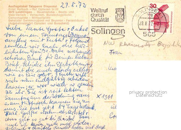 72917045 alte Postkarte Leichlingen Rheinland Fliegeraufnahme Ausflugslokal Talsperre Diepental postalisch gelaufen Erhaltung siehe scans [NatalD47] KatCode: 11110005378016