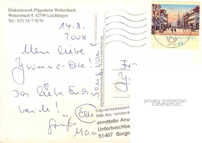 72896685 alte Postkarte Leichlingen Rheinland Fliegeraufnahme Diakoniewerk Pilgerheim Weltersbach postalisch gelaufen Erhaltung siehe scans [AndreD76] KatCode: 11110005378016