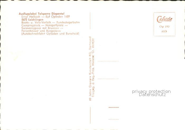 72601810 Leichlingen Rheinland Fliegeraufnahme Talsperre Diepental postalisch nicht gelaufen Erhaltung siehe scans [LiesaD40] KatCode: 11110005378016