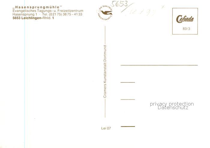 73870512 Leichlingen Rheinland Hasensprungmuehle Ev Tagungs und Freizeitzentrum postalisch nicht gelaufen Erhaltung siehe scans [WerneD78] KatCode: 11110005378016