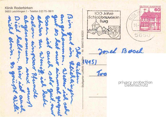 74109578 alte Postkarte Leichlingen Rheinland NRW Klinik Roderbirken Luftbild postalisch gelaufen Erhaltung siehe scans [IrynaD87] KatCode: 11110005378016