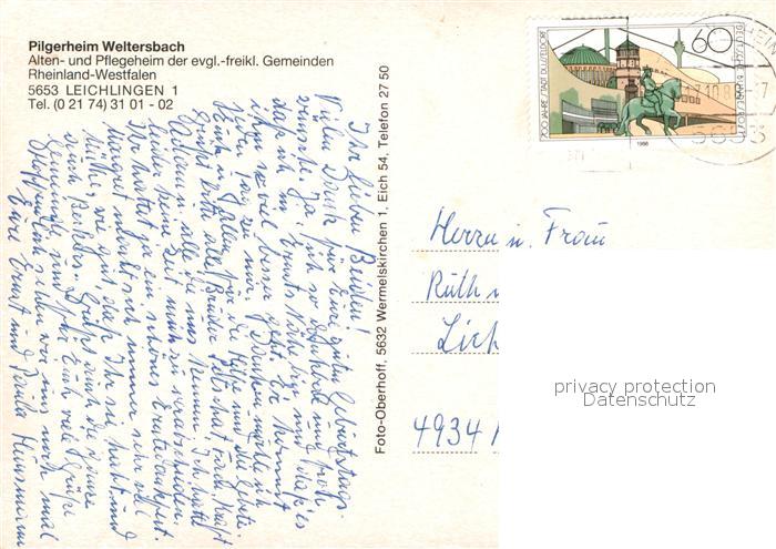 73007164 alte Postkarte Leichlingen Rheinland Pilgerheim Weitersbach postalisch gelaufen Erhaltung siehe scans [WerneD78] KatCode: 11110005378016