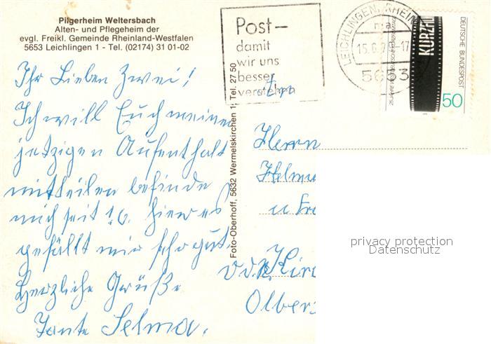 73088379 alte Postkarte Leichlingen Rheinland Pilgerheim Weltersbach postalisch gelaufen Erhaltung siehe scans [PaolaD17] KatCode: 11110005378016