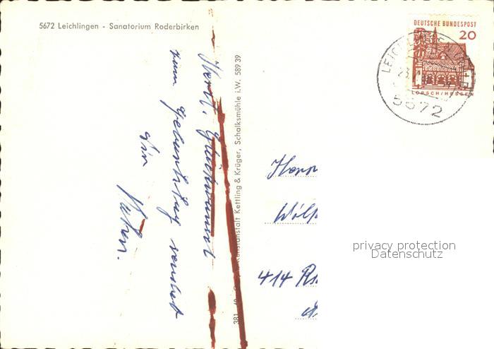 72123648 alte Postkarte Leichlingen Rheinland Sanatorium Roderbirken postalisch gelaufen Erhaltung siehe scans KatCode: 11110005378016