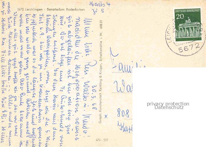 74029352 alte Postkarte Leichlingen Rheinland Sanatorium Roderbirken postalisch gelaufen Fliegeraufnahme Erhaltung siehe scans [FriedD77] KatCode: 11110005378016