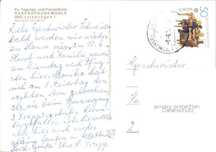 72321455 alte Postkarte Leichlingen Rheinland Tagungs- und Freizeitheim Hasensprungmuehle postalisch gelaufen Erhaltung siehe scans KatCode: 11110005378016