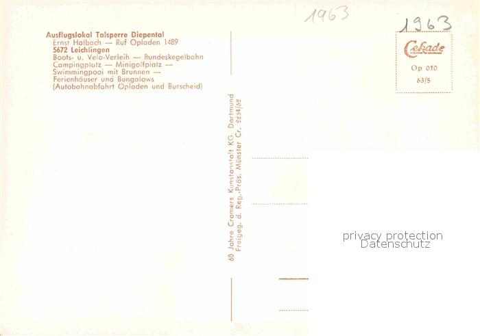 72898883 Leichlingen Rheinland Talsperre Diepental Fliegeraufnahme postalisch nicht gelaufen Erhaltung siehe scans [FriedD77] KatCode: 11110005378016