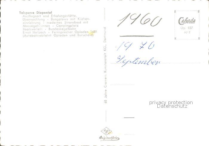 71944413 Leichlingen Rheinland Talsperre Diepental Gaststaette postalisch nicht gelaufen Erhaltung siehe scans KatCode: 11110005378016
