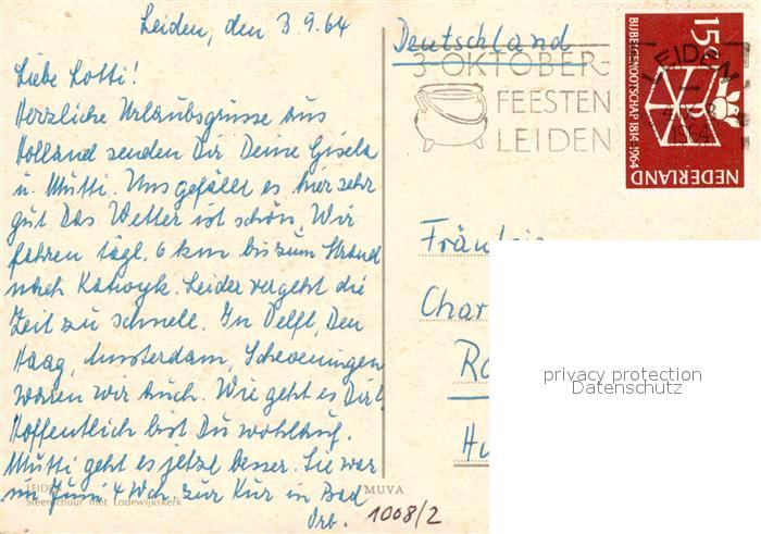 old postcard Leiden Steenschuur met Lodewijkskerk postalisch gelaufen Erhaltung siehe scans [WerneD78]