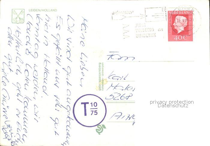 old postcard Leiden Windmuehle Kirche Rathaus Monument postalisch gelaufen Erhaltung siehe scans
