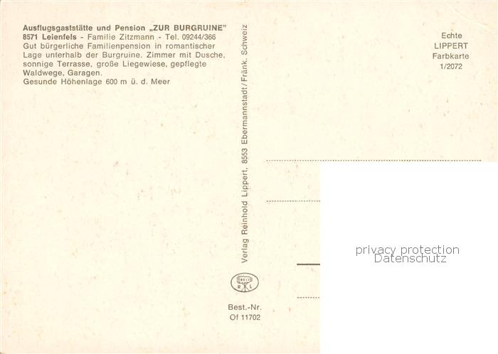 73844807 Leienfels Gasthof Pension Zur Burgruine postalisch nicht gelaufen Erhaltung siehe scans [FriedD77] KatCode: 11110009472179