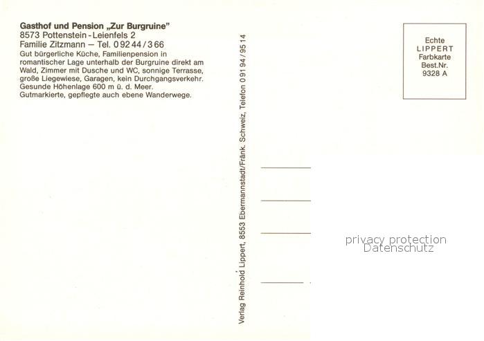 73125889 Leienfels Gasthof Zur Burgruine postalisch nicht gelaufen Erhaltung siehe scans [NatalD47] KatCode: 11110009472179