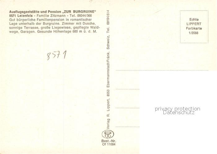 73785209 Leienfels Gaststaette Pension Zur Burgruine Truebachtal Ruineneingang Inneres der Ruine postalisch nicht gelaufen Erhaltung siehe scans [WerneD78] KatCode: 11110009472179